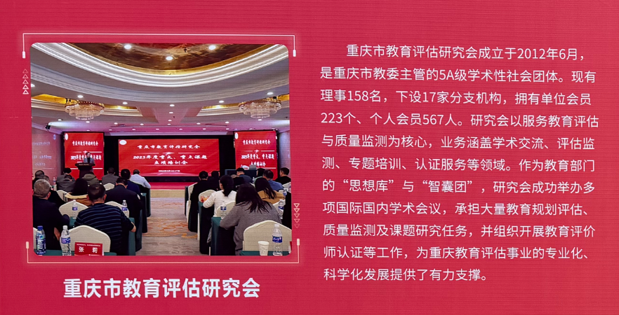 自成立以来,重庆市教育评估研究会致力于团结重庆市教育评估专业工作者,围绕教育评估与质量监测服务、培训、理论研究、学术交流、行业自律、资质认证、编撰会刊、推广科研成果等方面,积极开展学术研究与教育评估活动,充分发挥特有职能作用,当好“思想库”“智囊团”和“参谋部”,赢得了社会广泛认可。